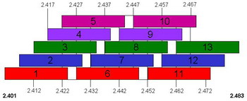 nepřekrývajícími kanály. Což znamená, že na v jedné lokalitě mohou pracovat