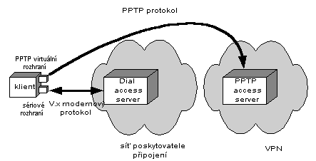 vytváří PPTP spojení na známý PPTP server (dosažitelný v rámci směrovacích