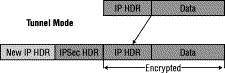 tunelovací - celý IP datagram je šifrován a je vytvořena nová hlavička: